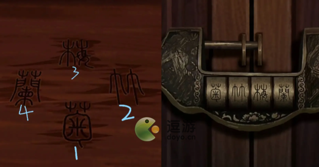 1、切换场景,桌上鸟笼得到【木鸯】,记住杯子上的字和扇面信息